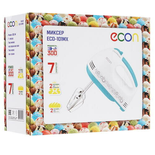 Миксер Еcon ECO-101MX, 300Вт. 7 скоростей, белый с синим