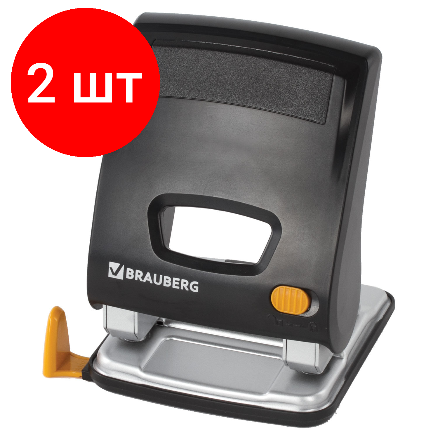 Купить Комплект 2 шт, Дырокол энергосберегающий BRAUBERG "Easy Press", до 30 листов, без усилий, 224343
