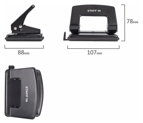 Дырокол STAFF "Manager", металлический средний, до 20 листов, черный, 224649 (цена за 1 ед.товара)