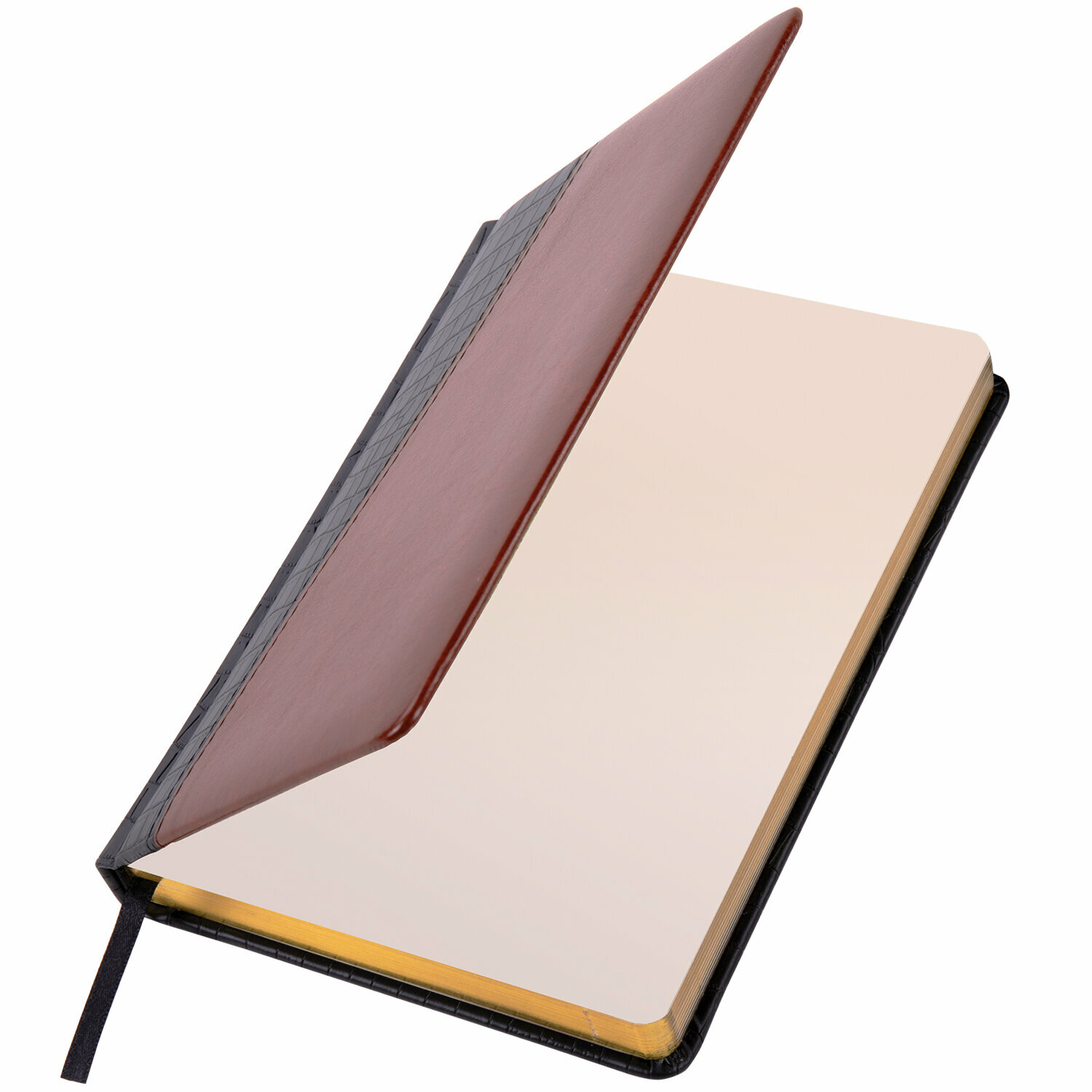 Ежедневник BRAUBERG недатированный, А5, 138х213 мм, Cayman, комбинированная кожа, 160 л., черный/темно-кор., крем. бл., зол.срез, 123399