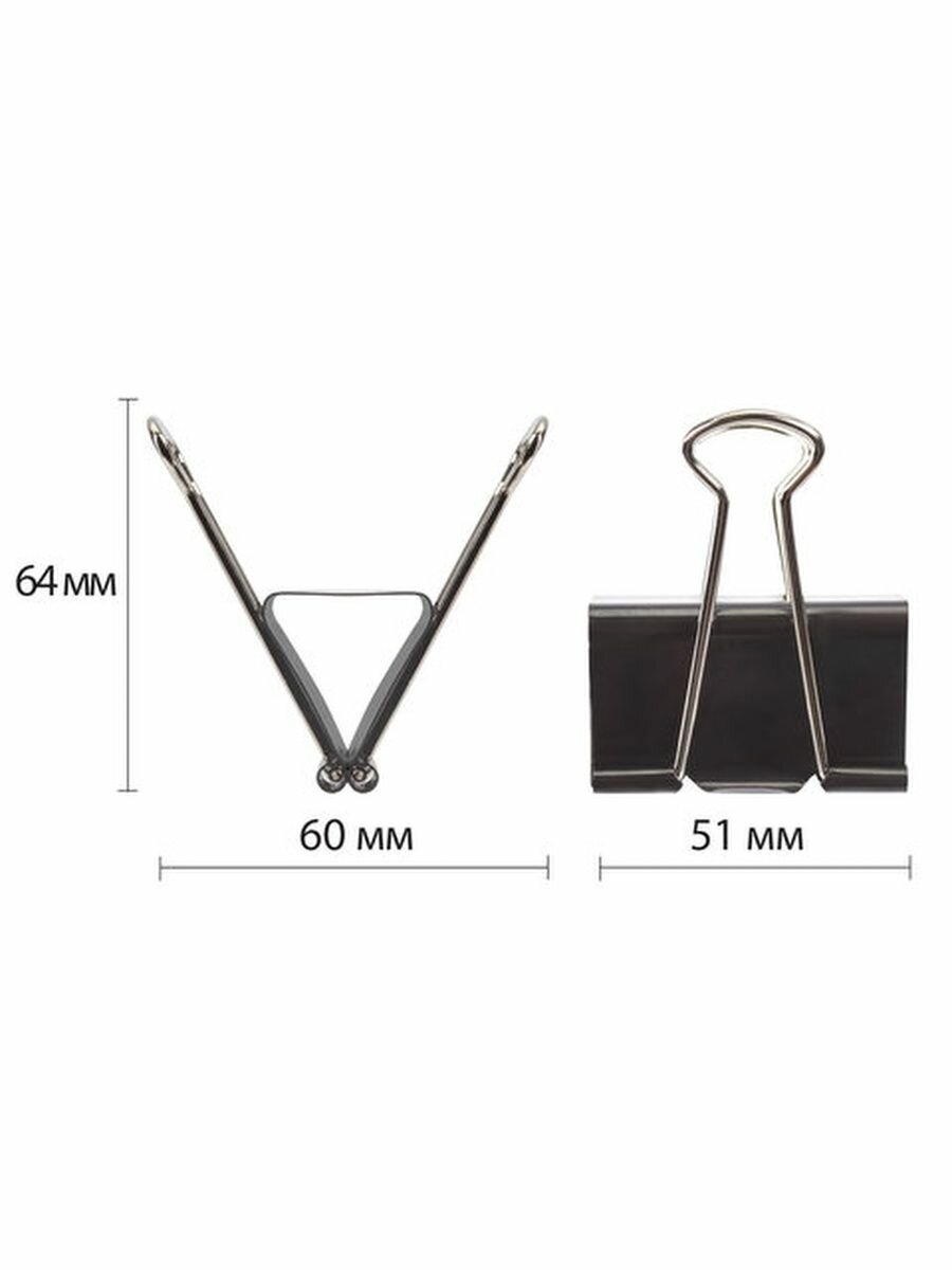 Зажимы для бумаг офисмаг, комплект 12 шт., 51 мм, на 230 листов, черные, картонная коробка, 222090