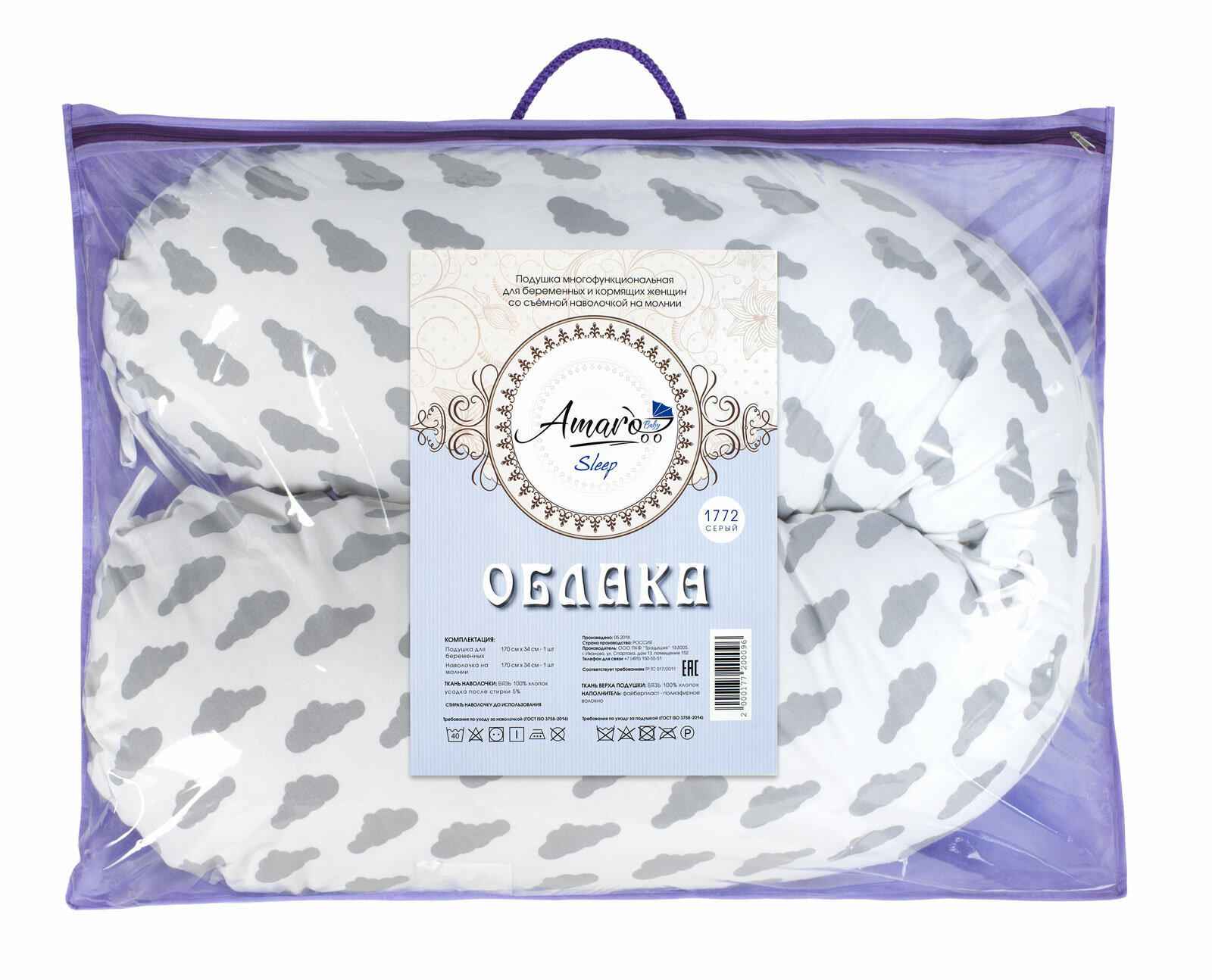 Купить Подушка для беременных Amarobaby 170х25 (Облака вид серый) .