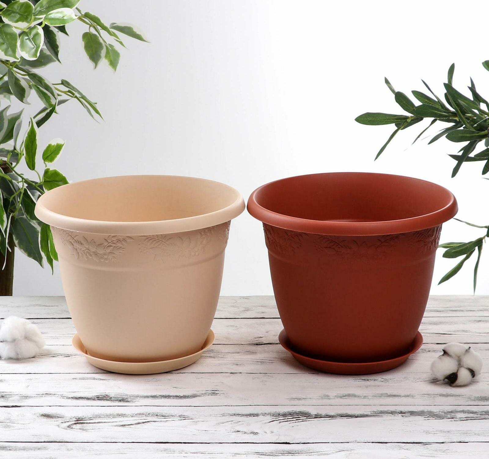 Горшок цветочный Idea с поддоном, "Рябина", 7,5 л, цвет латте
