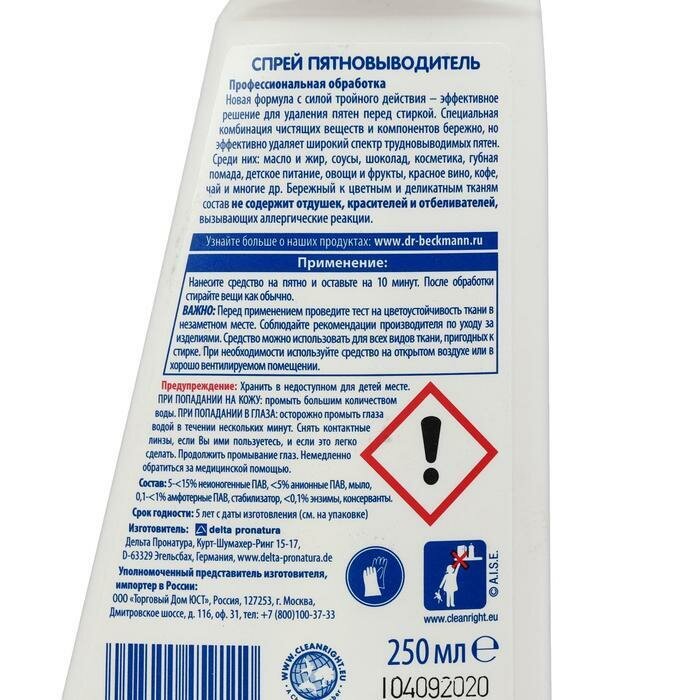 Спрей пятновыводитель Dr.Beckmann Pre Wash 250 мл интересное: