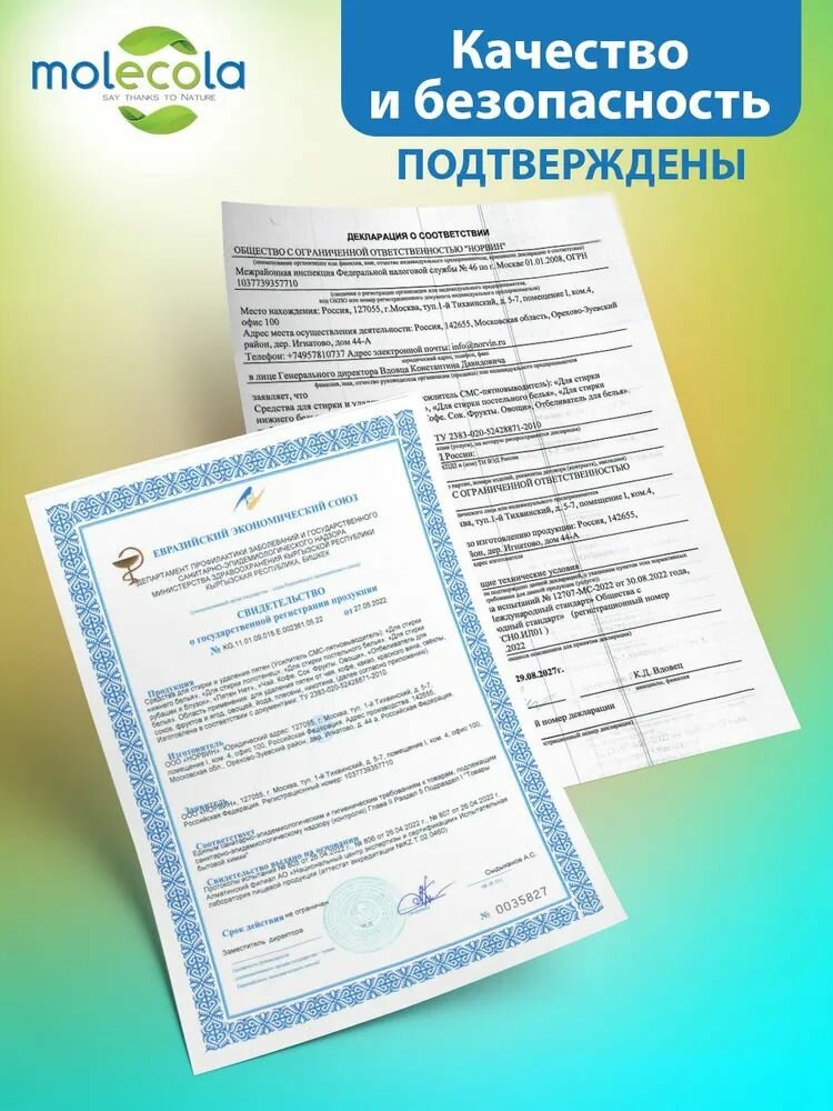 2 Шт. MOLECOLA Эко кислородный отб-ель.Подходит д/стир.машин и ручной стир.600 г