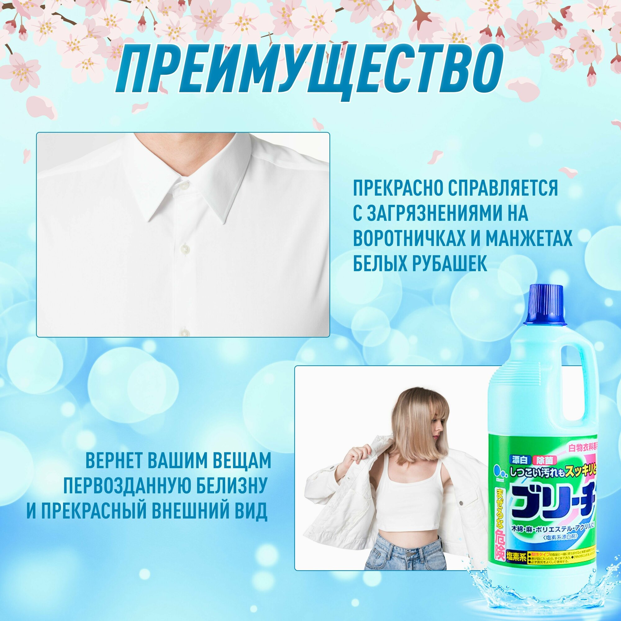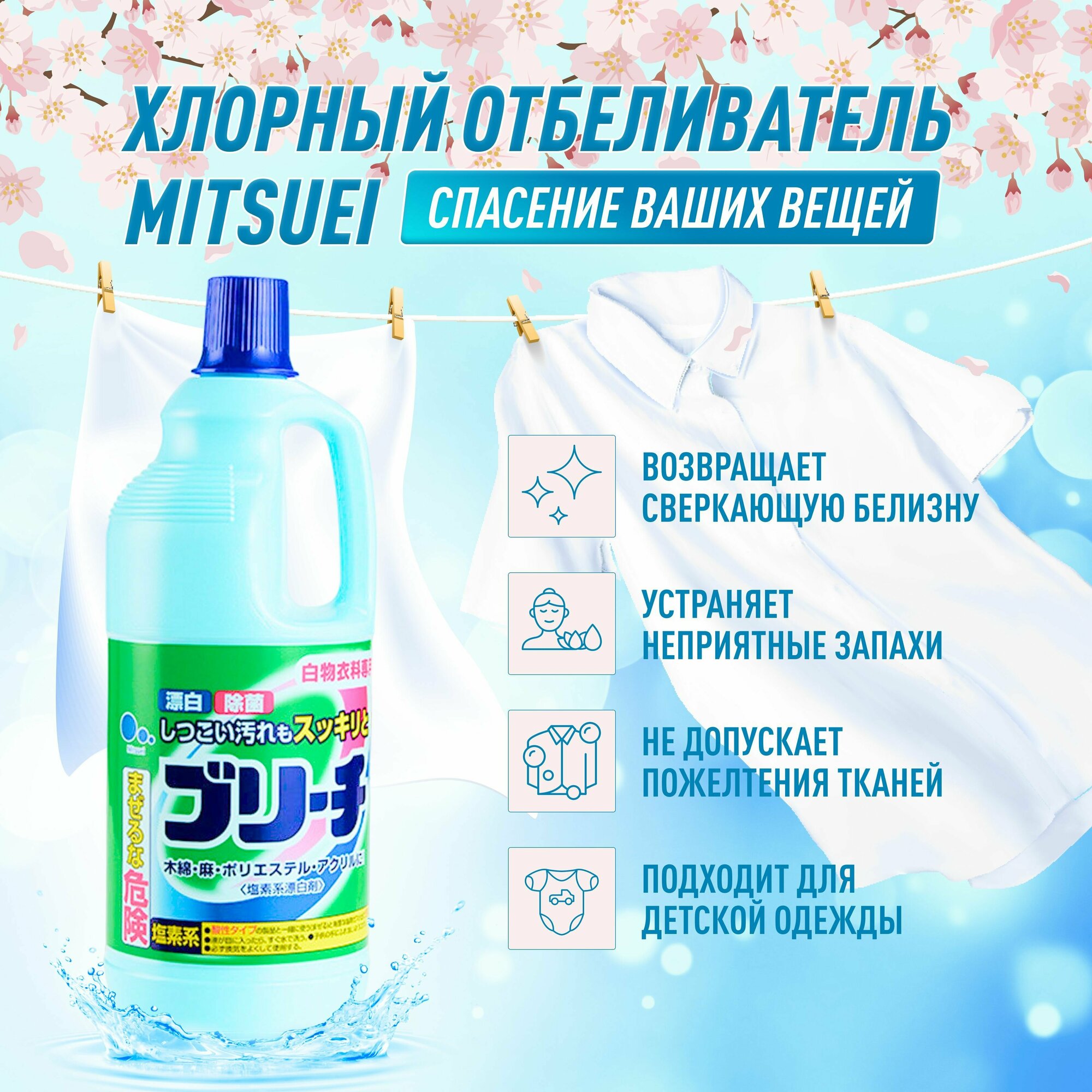 MITSUEI Японский отбеливатель-пятновыводитель для белого белья хлорный, 1500 мл, Япония