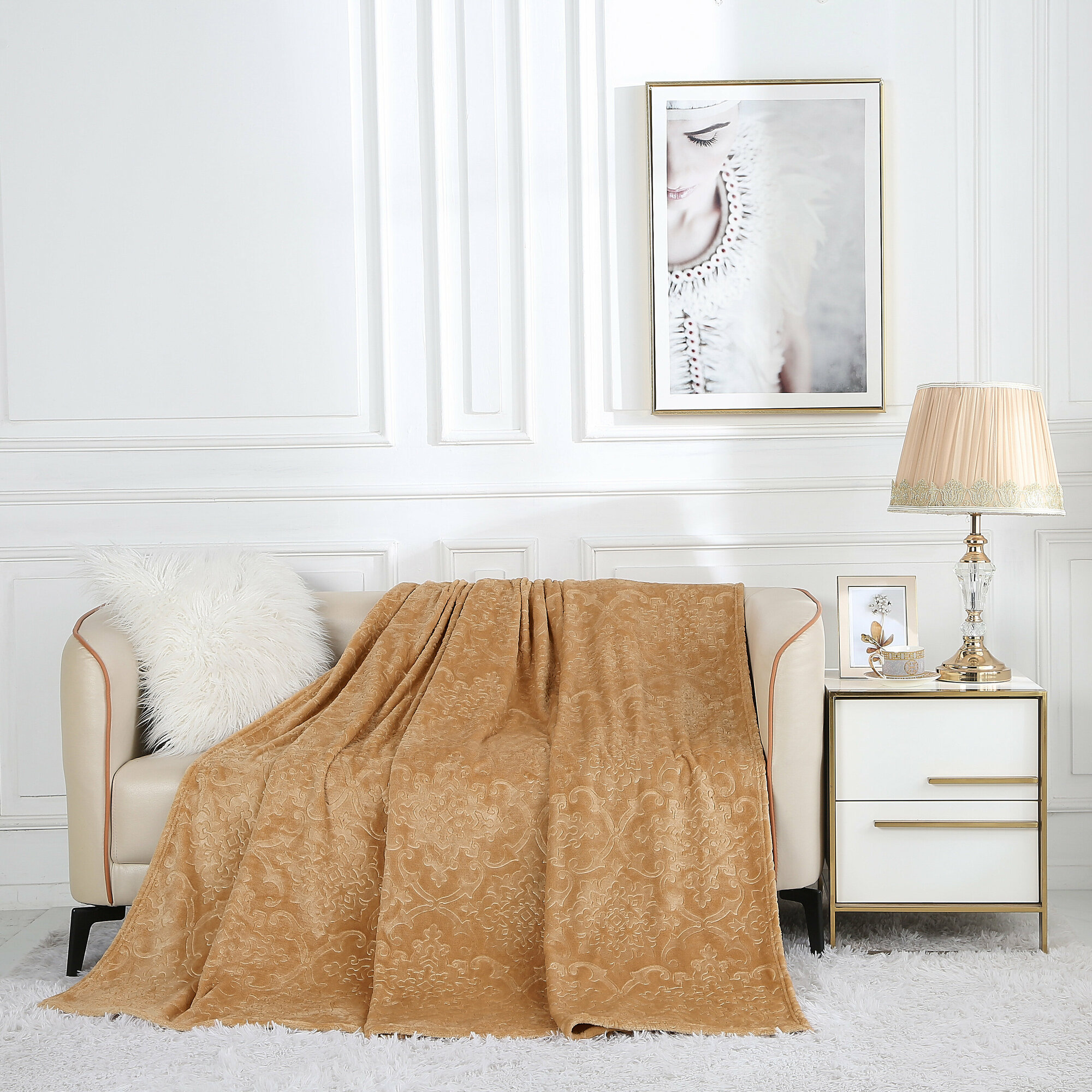 Плед из велсофта Moreska 008-OPM Cleo (бежевый), 180x200