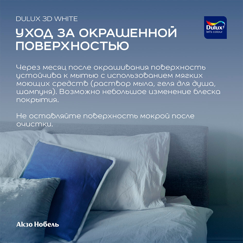 Краска водно-дисперсионная Dulux 3D White для детской влагостойкая моющаяся матовая белый 10 л