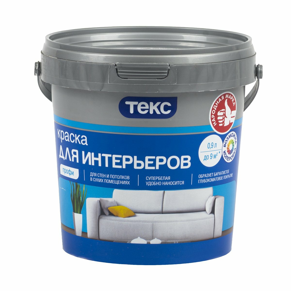 Текс Интерьерная краска в/д (0,9л) профи / текс Для интерьеров краска для стен и потолков в сухих помещениях (0,9л) класс профи