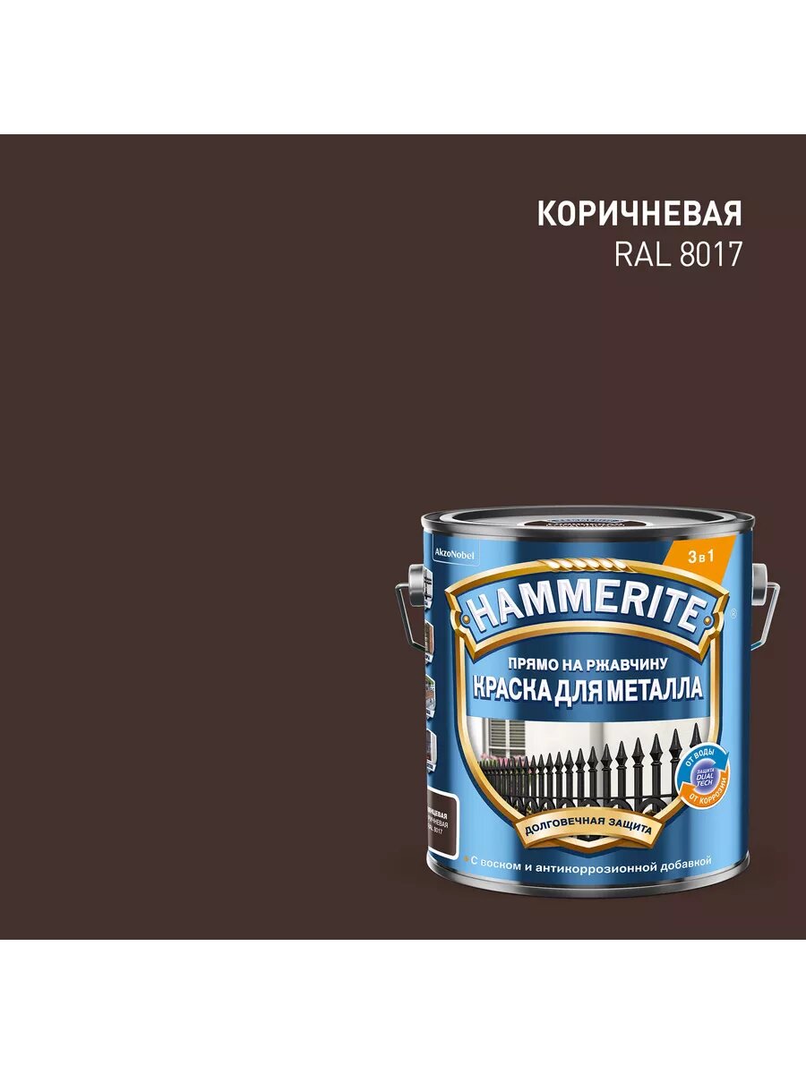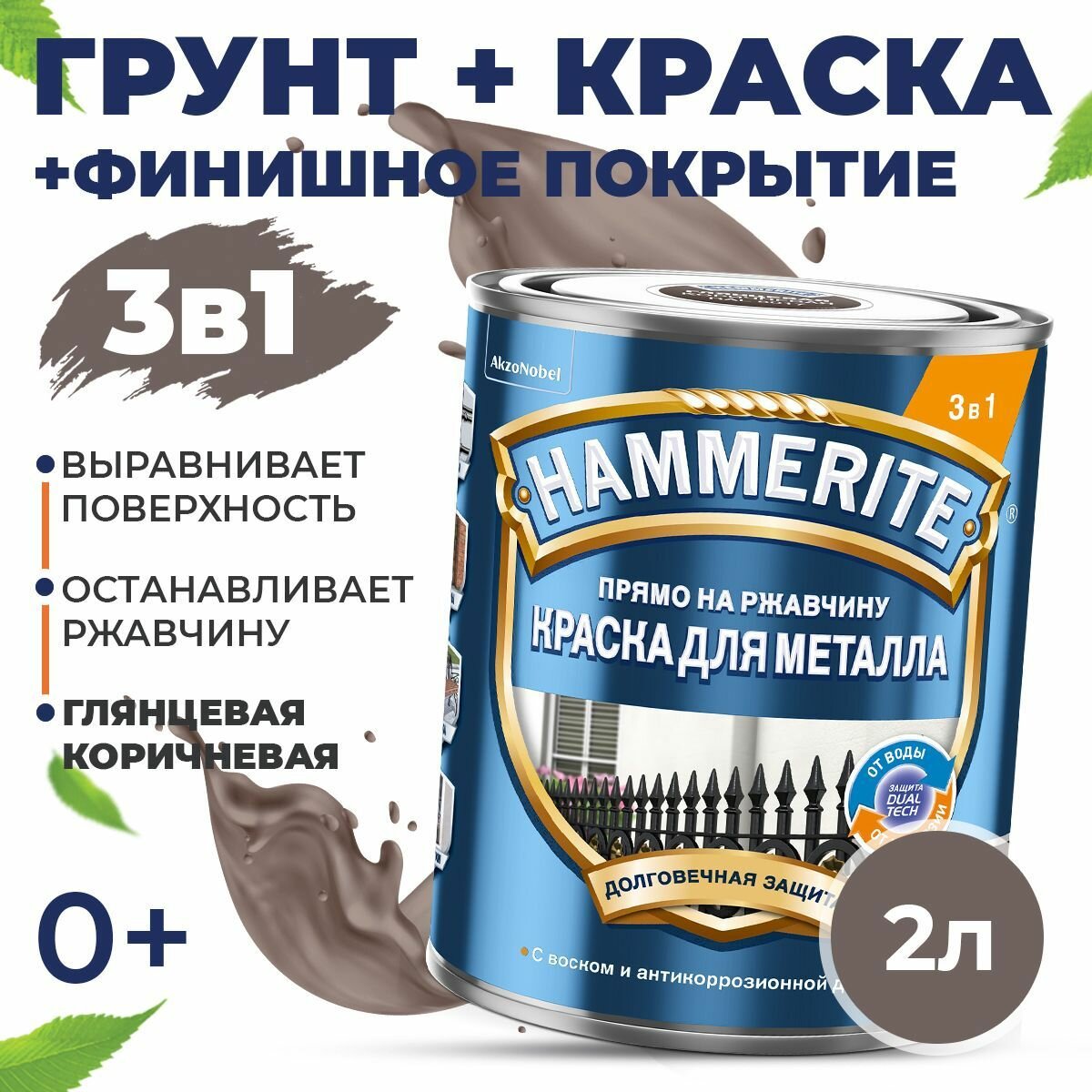 Краска для металла 3 в 1 прямо на ржавчину Hammerite гладкая глянцевая (2л) коричневый RAL 8017