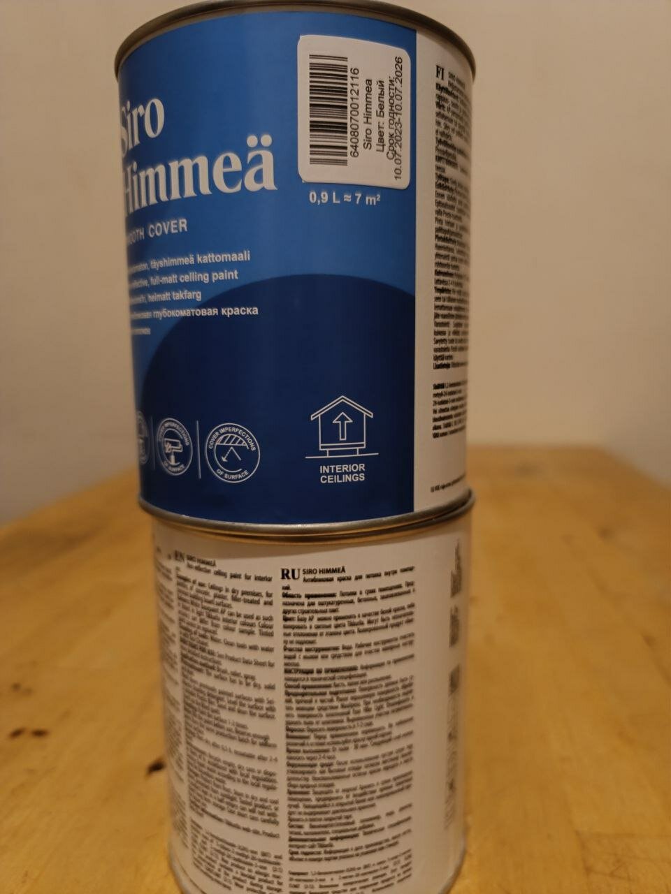 Акриловая краска для потолка Tikkurila(тиккурила) Siro Mat(Siro Himmea), совершенно матовая 0,9л
