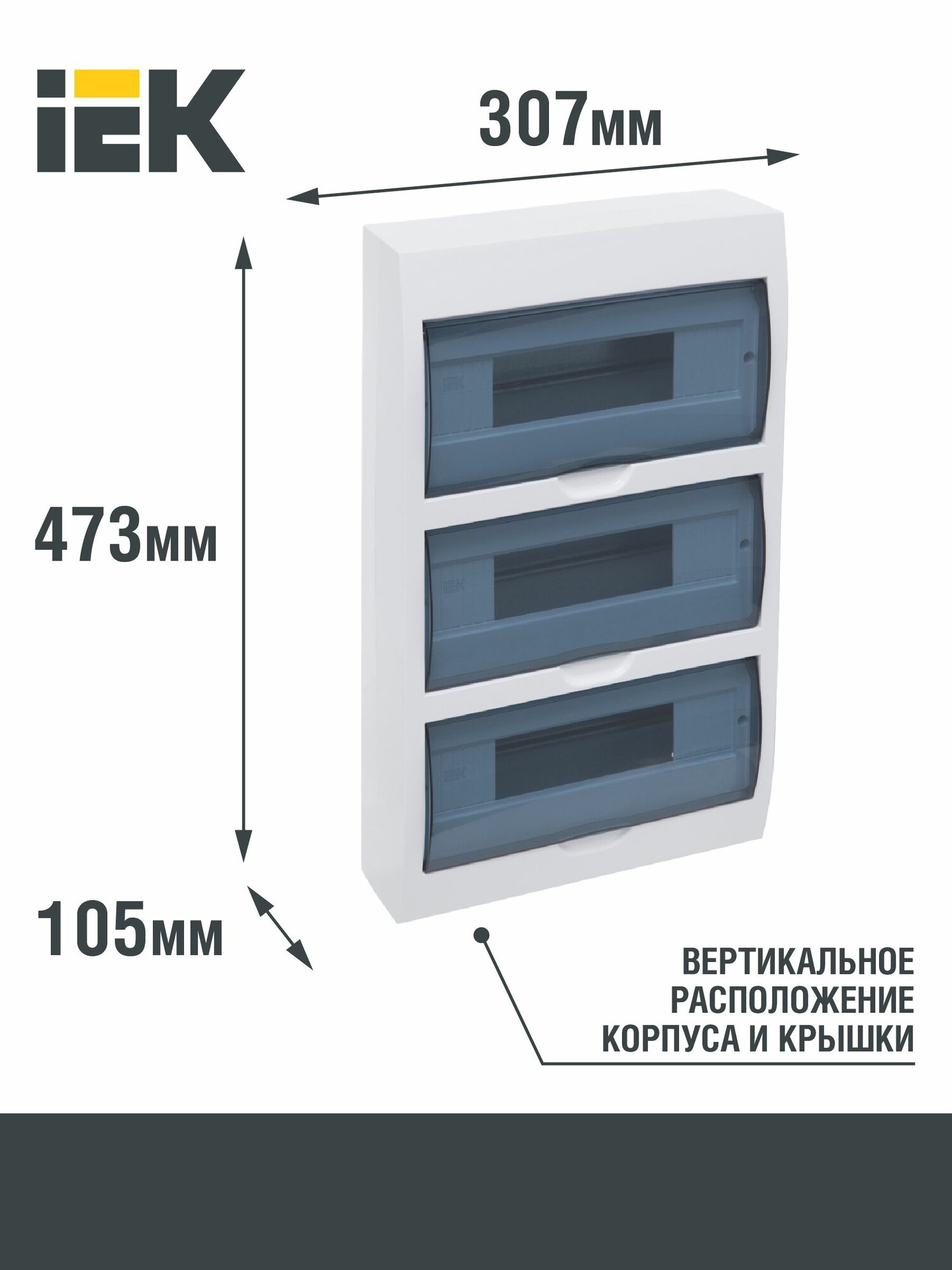 Корпус навесной модульный ЩРН-П-36 тонированная дверь IP41: 3 ряд, 36 модулей, 473 х 307 х 105 (ВхШхГ). MKP12-N-36-40-05 IEK