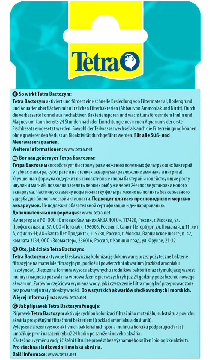 Tetra Bactozym средство для запуска биофильтра, 10 шт., 1 л, 9 г