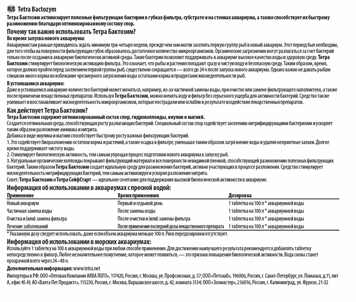 | Отзыв: | Хорошее средство для запуска фильтров. Населяет аквариум полезными бактериями |
