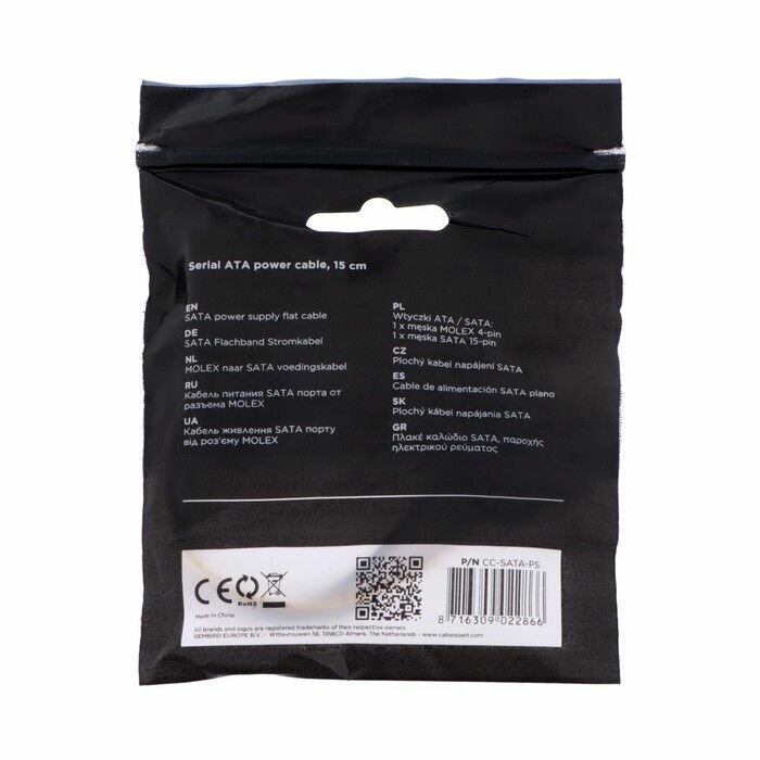 Кабель Cablexpert CC-SATA-PS Кабель питания SATA Cablexpert CC-SATA-PS, 15см, molex 4pin/sata 15pin, пакет {400} CC-SATA-PS (022866)
