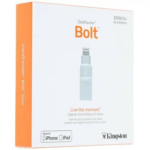 Ниже Вы можете прочитать отзывы на USB Flash / Kingston DataTraveler Bolt Duo 32Gb, серебро / Lightning/USB 3.1 / C-USB3L-SR32G-EN, ознакомится с подробными характеристиками, посмотреть интересные обзоры и фотографии на USB Flash / Kingston DataTraveler Bolt Duo 32Gb, серебро / Lightning/USB 3.1 / C-USB3L-SR32G-EN.
