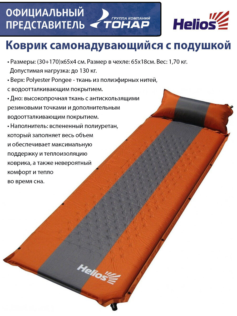 Коврик самонадувающий с подушкой (30+170)х65х4, HELIOS