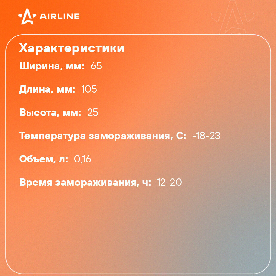 СохранитьАккумулятор холода, 160 мл, размер 10,5*6,5*2,5 см AAC-01 AIRLINE интересное: