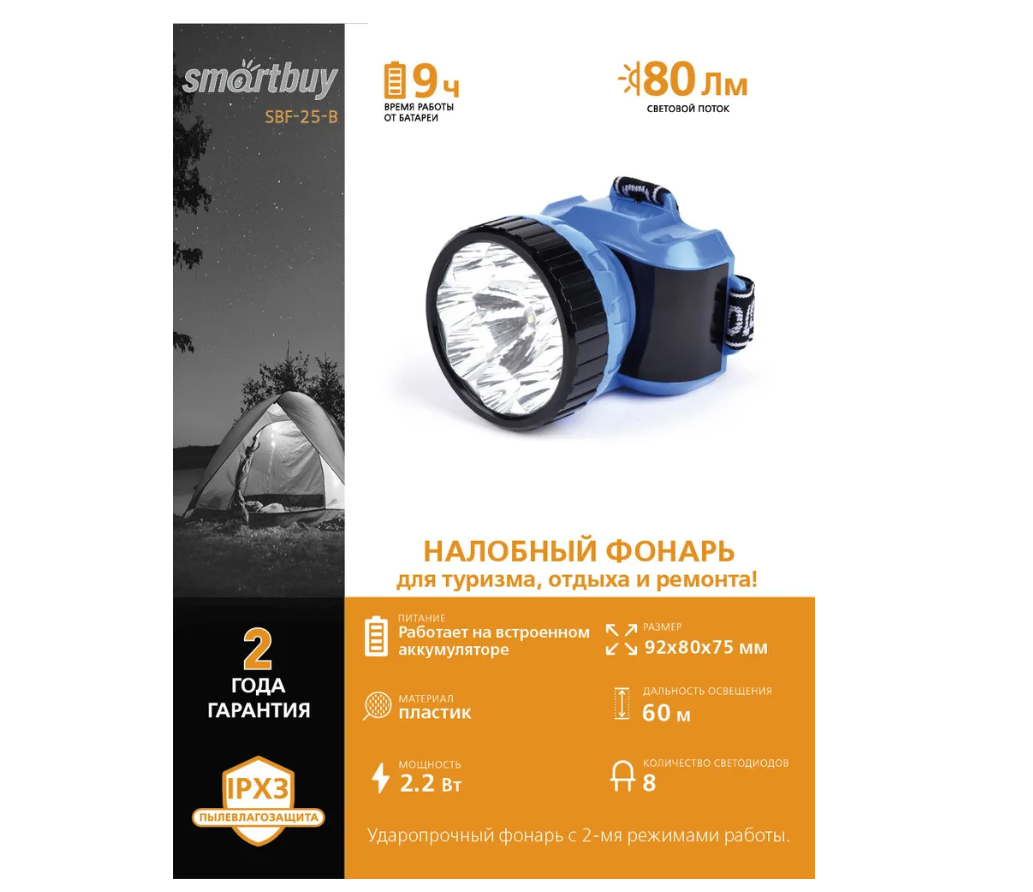 Ниже Вы можете прочитать отзывы на Smartbuy фонарь налобный (акк. 4V 0.5 Ah) 1св/д 1W+8св/д, синий/пластик, 2 режима, з/у 220V SBF-25-B, ознакомится с подробными характеристиками, посмотреть интересные обзоры и фотографии на Smartbuy фонарь налобный (акк. 4V 0.5 Ah) 1св/д 1W+8св/д, синий/пластик, 2 режима, з/у 220V SBF-25-B.