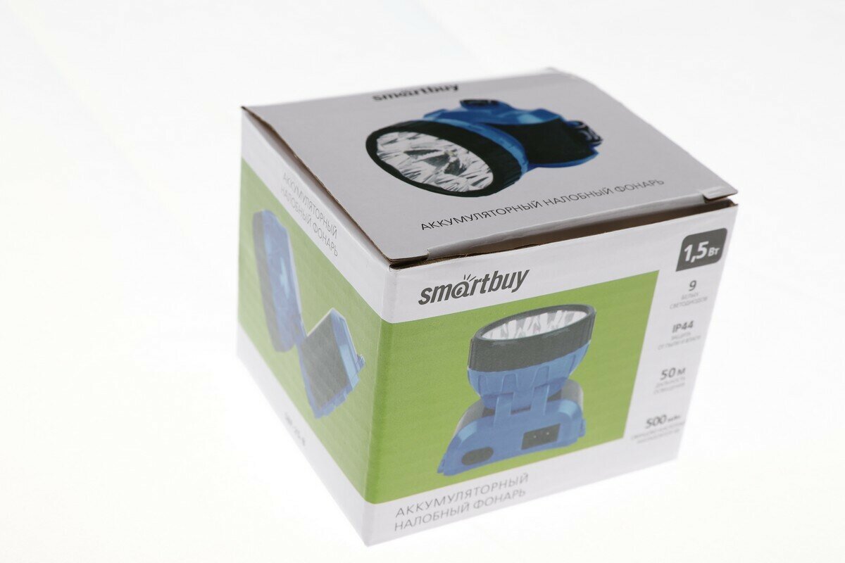 Аккумуляторный налобный фонарь 1ВТ + 8 LED Smartbuy, синий