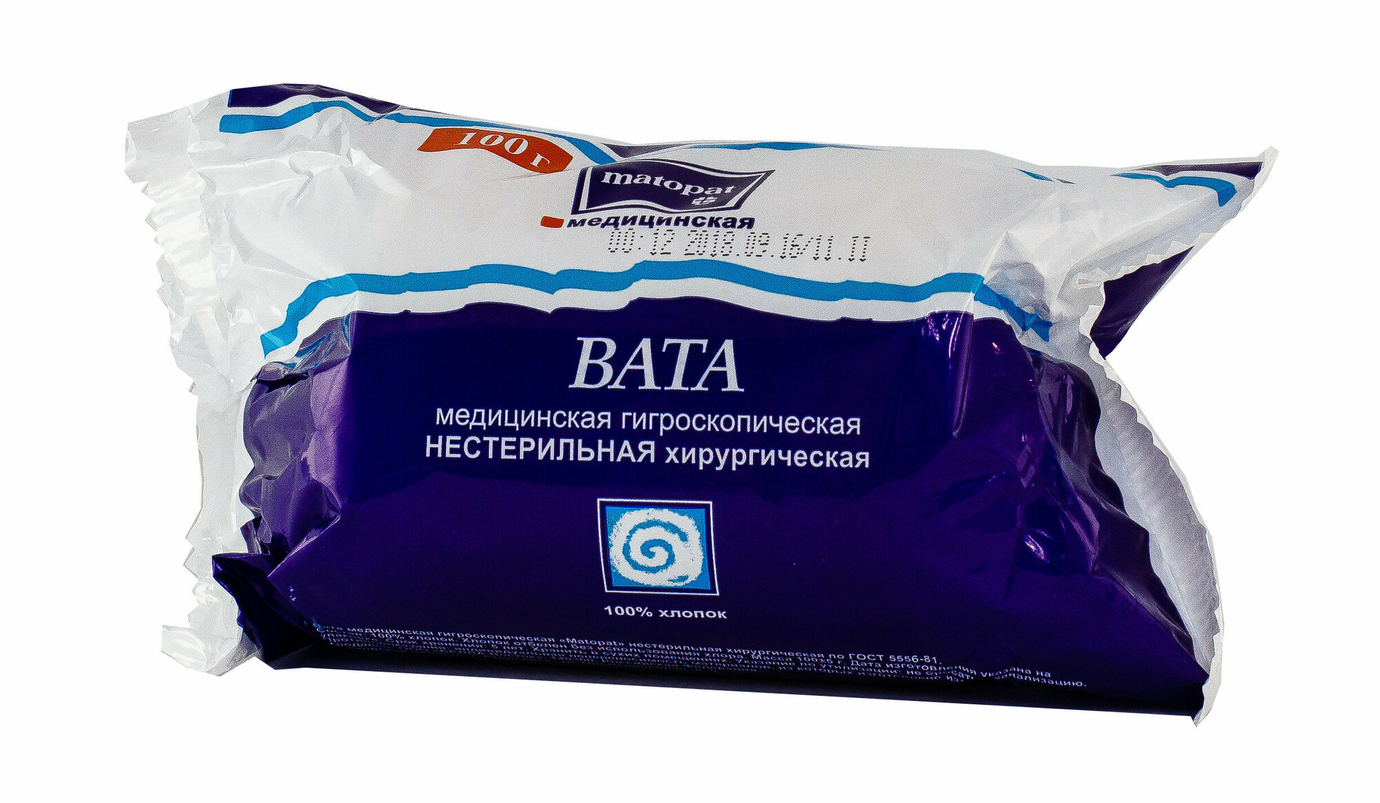 Вата медицинская Matopat 100г 100% хлопок