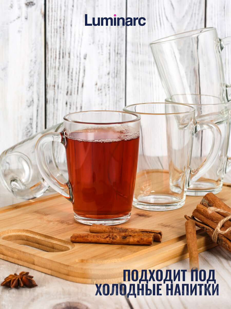 Кружка Luminarc С Добрым утром 320 мл, 6 штук, прозрачная с ручкой