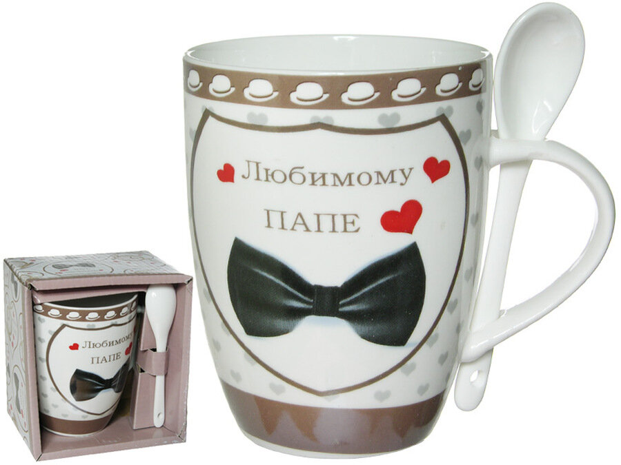 Кружка Фарфор 340 Любимому Папе С Ложкой П/уп (12) 1157 .