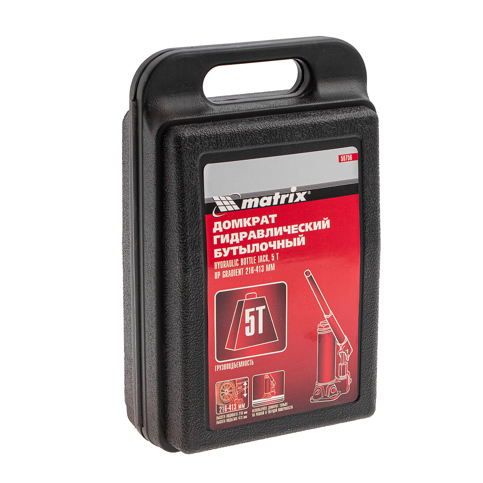 MATRIX 50756 50756_домкрат! гидравлический бутылочный, 5т, h подъема 216-413мм, в пласт. кейсе\