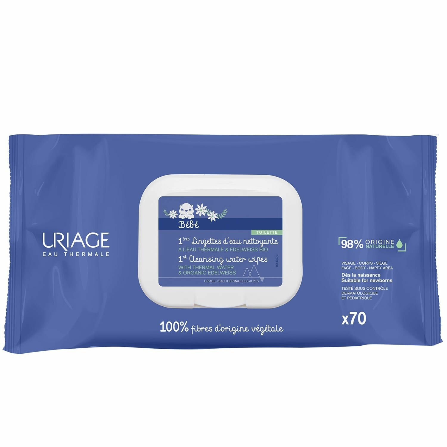 Влажные салфетки Uriage Первые Очищающие Салфетки, пластиковая крышка, 70 шт., 2 уп.