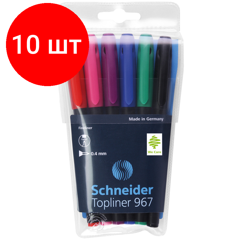Купить Комплект 10 шт, Набор капиллярных ручек Schneider "Topliner 967" 06цв., 0.4мм, европодвес