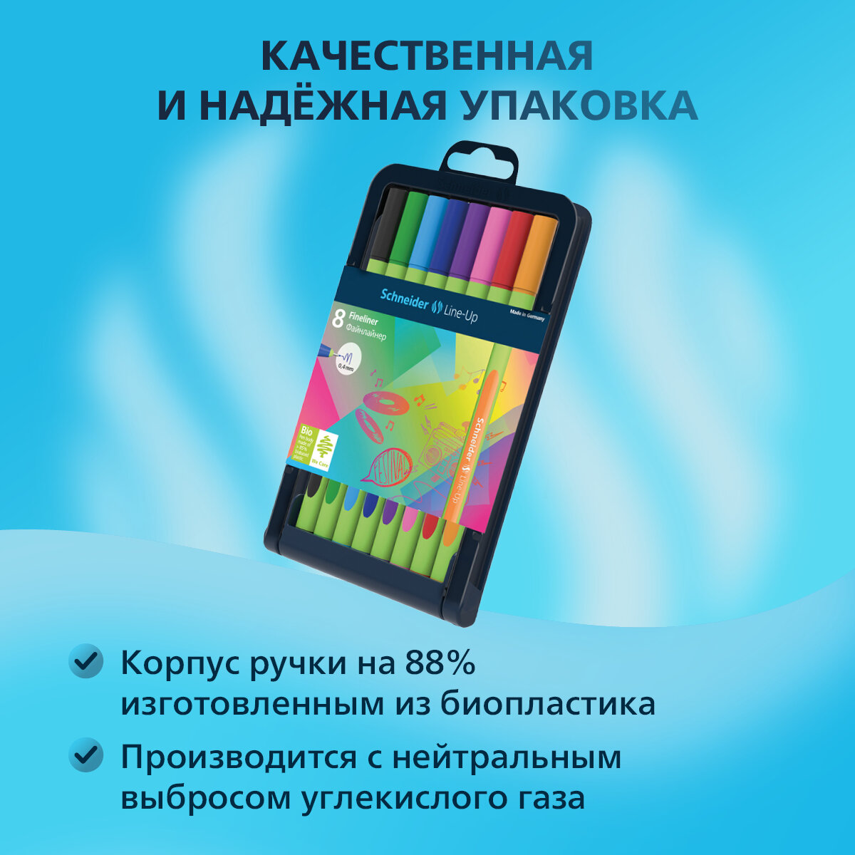 Ручки капиллярные цветные Schneider "Line-Up ", толщина линии 0,4 мм, канцелярия для школы и офиса, скетчинга, рисования, письма, набор 8 штук