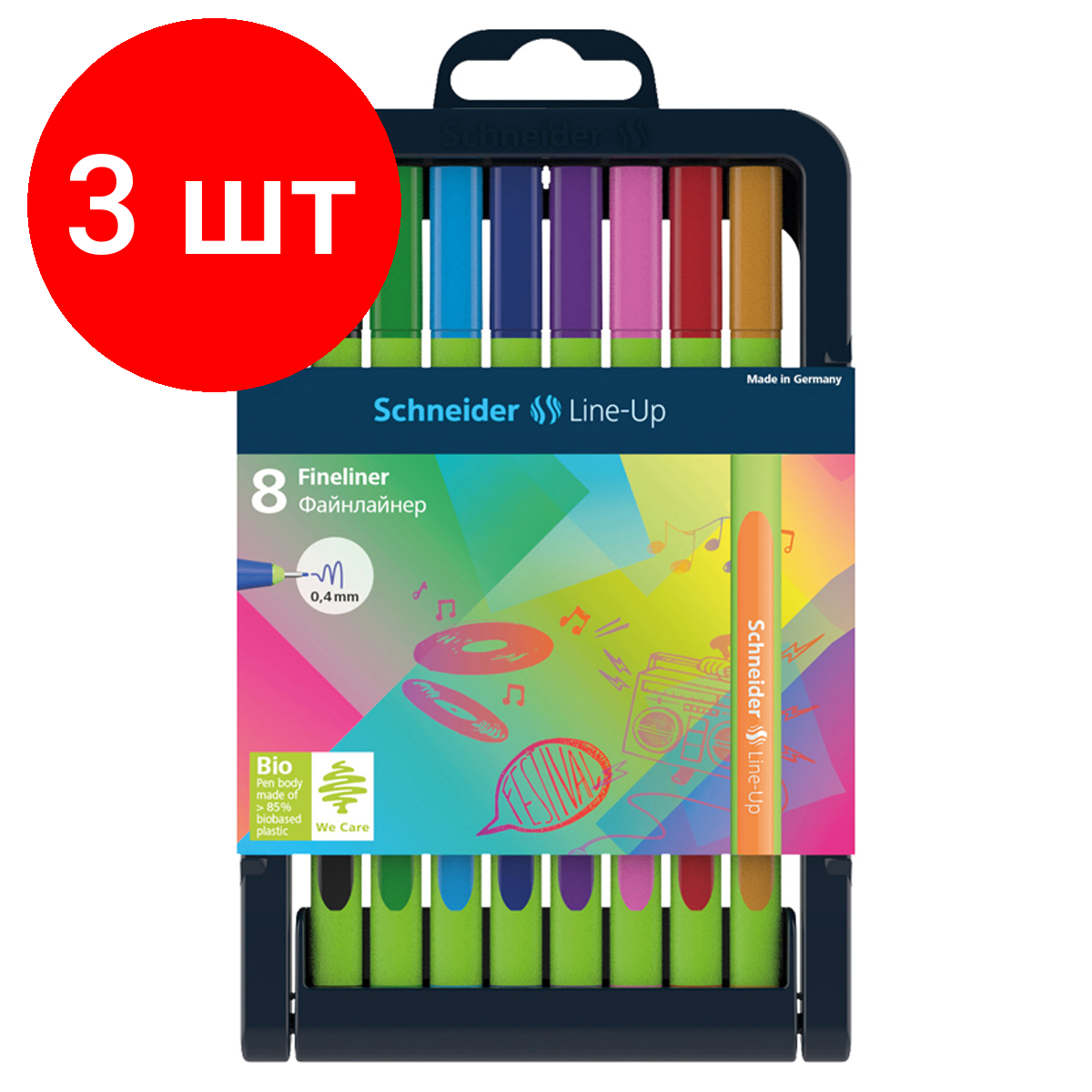 Купить Комплект 3 шт, Набор капиллярных ручек Schneider "Line-Up" 08цв., 0.4мм, европодвес