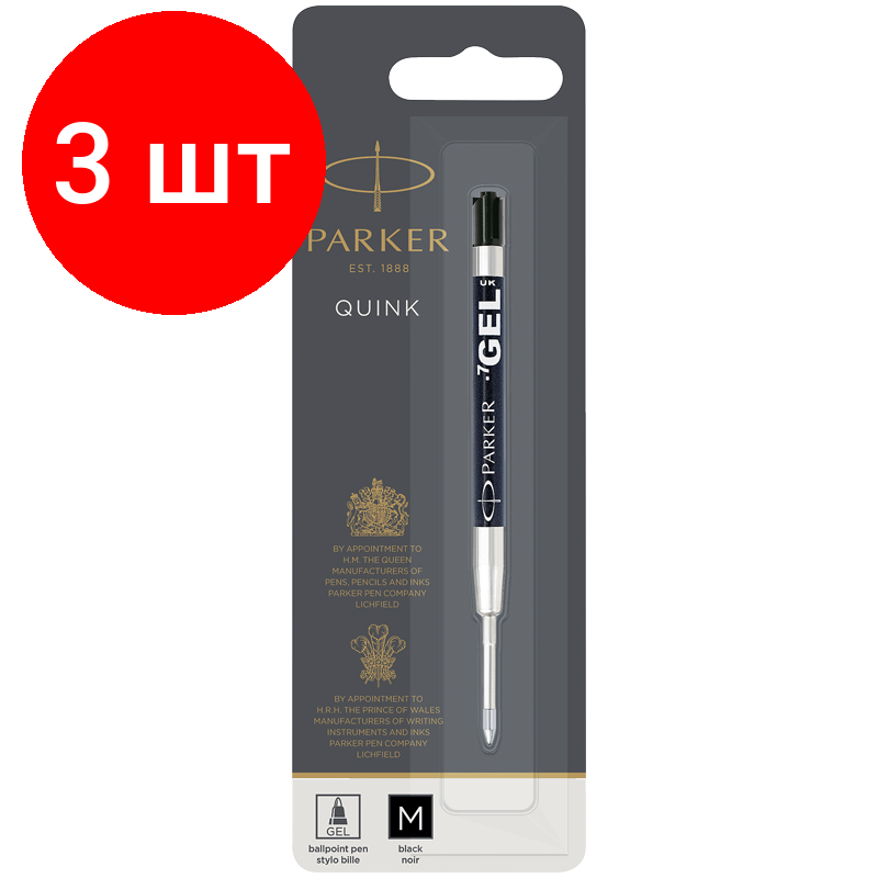 Купить Комплект 3 шт, Стержень гелевый Parker "Gel Ball Point" черный, 98мм, 0.7мм, блистер