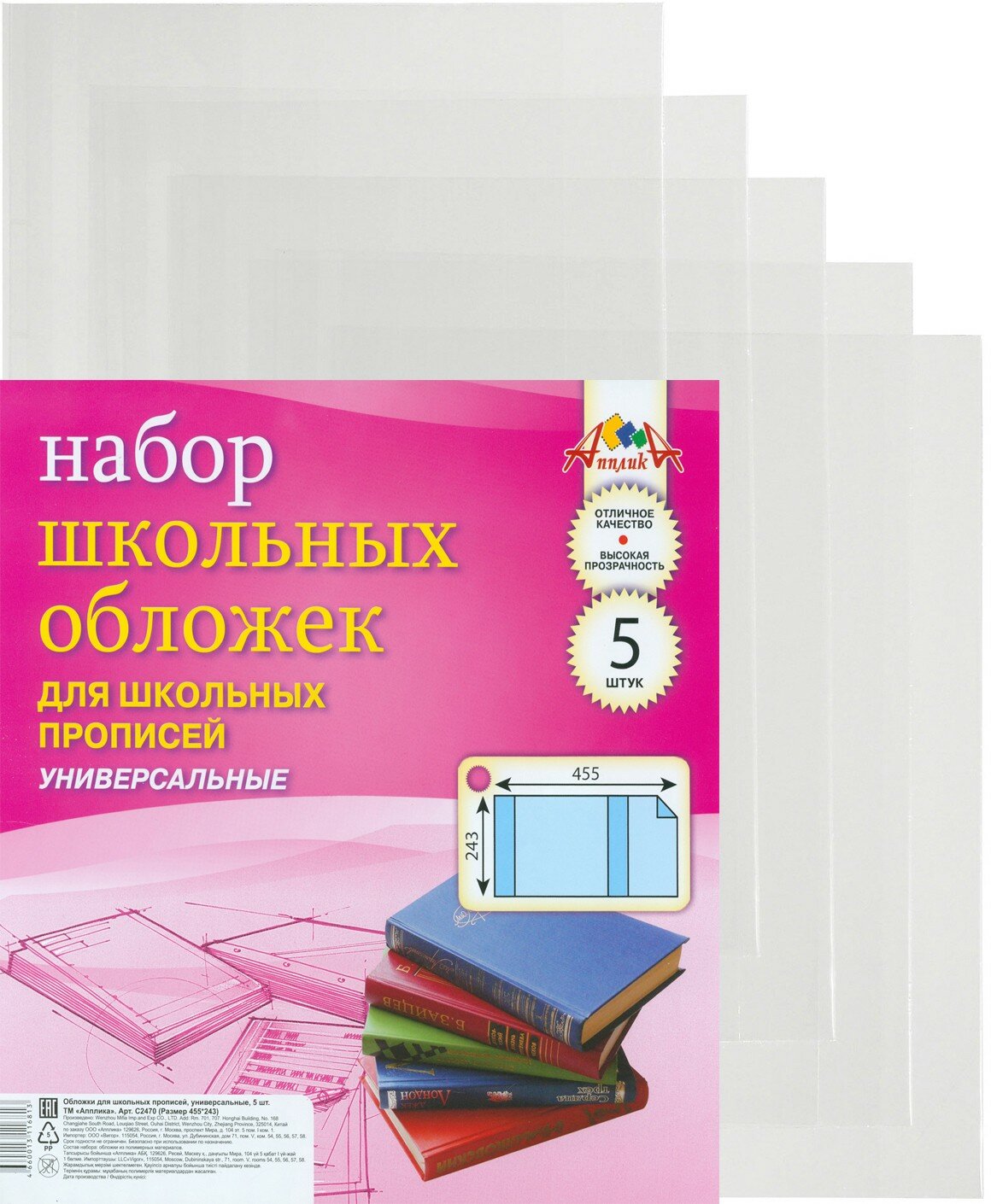 Купить Набор школьных универсальных обложек для прописей. 5 штук. Прозрачные