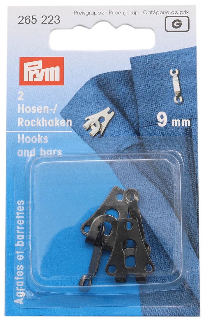 застежки "PRYM" 265223 Крючки д/брюк и юбок Ст. x 9 мм в блистере 2 шт.