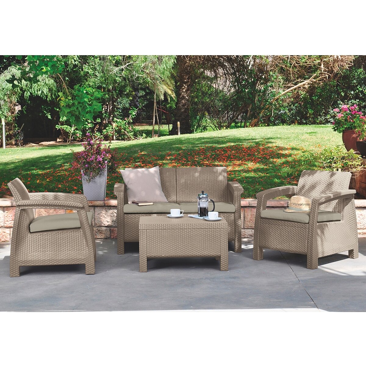Комплект мебели Allibert Corfu Set (диван, 2 кресла, стол), капучино