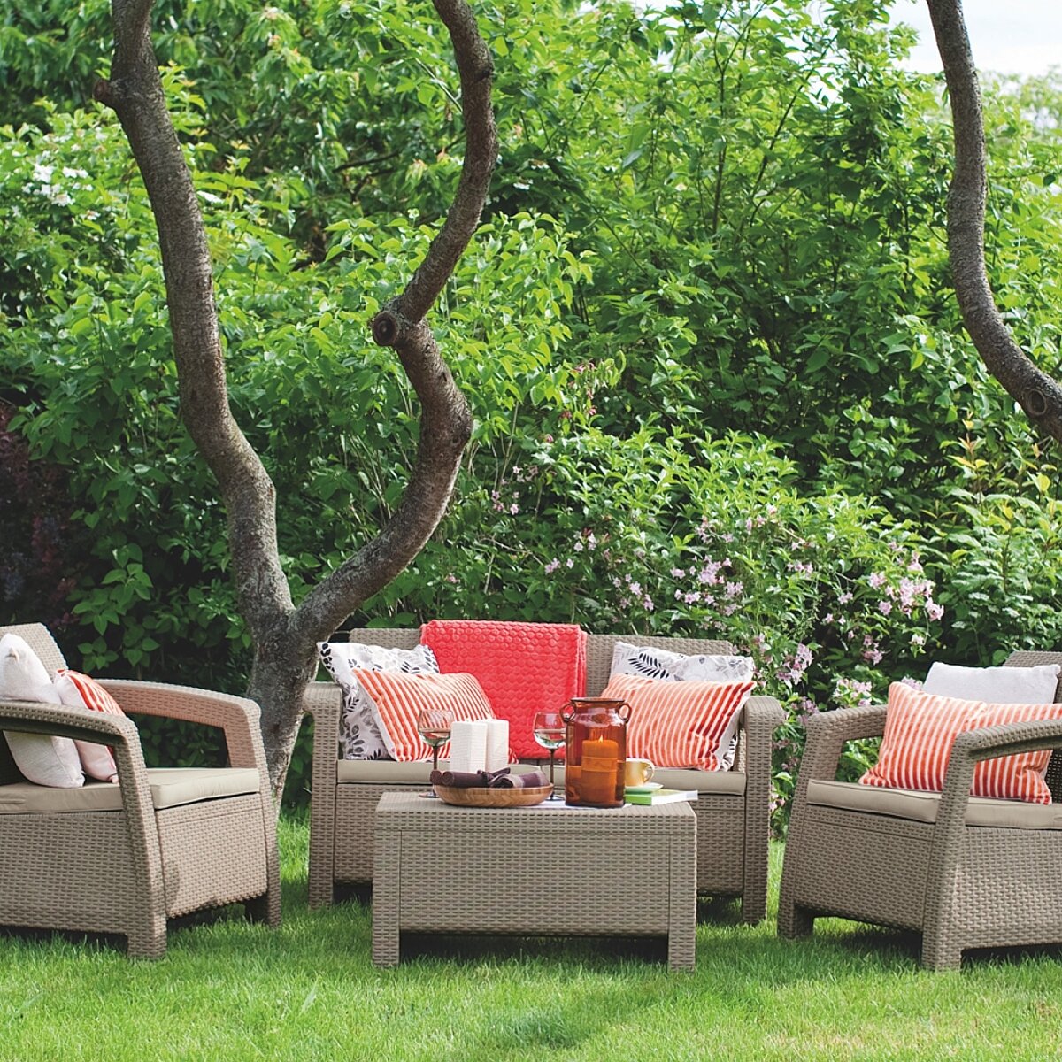 Комплект садовой мебели Keter Corfu Set (стол, 2 кресла, диван), капучино