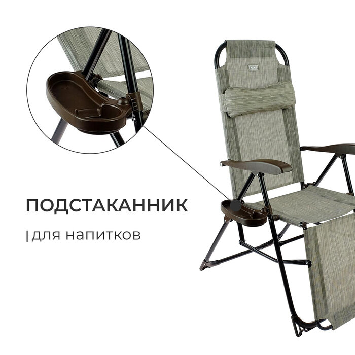 Кресло шезлонг складное с полкой, подножкой и съемным подголовником, 8 положений спинки