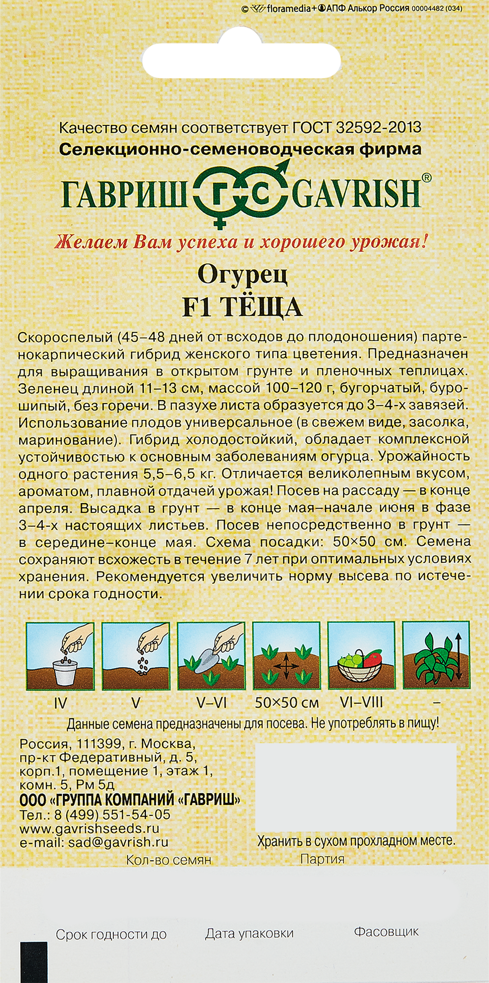 Гавриш Семена Огурец Теща F1 10 семян в пакете 003299