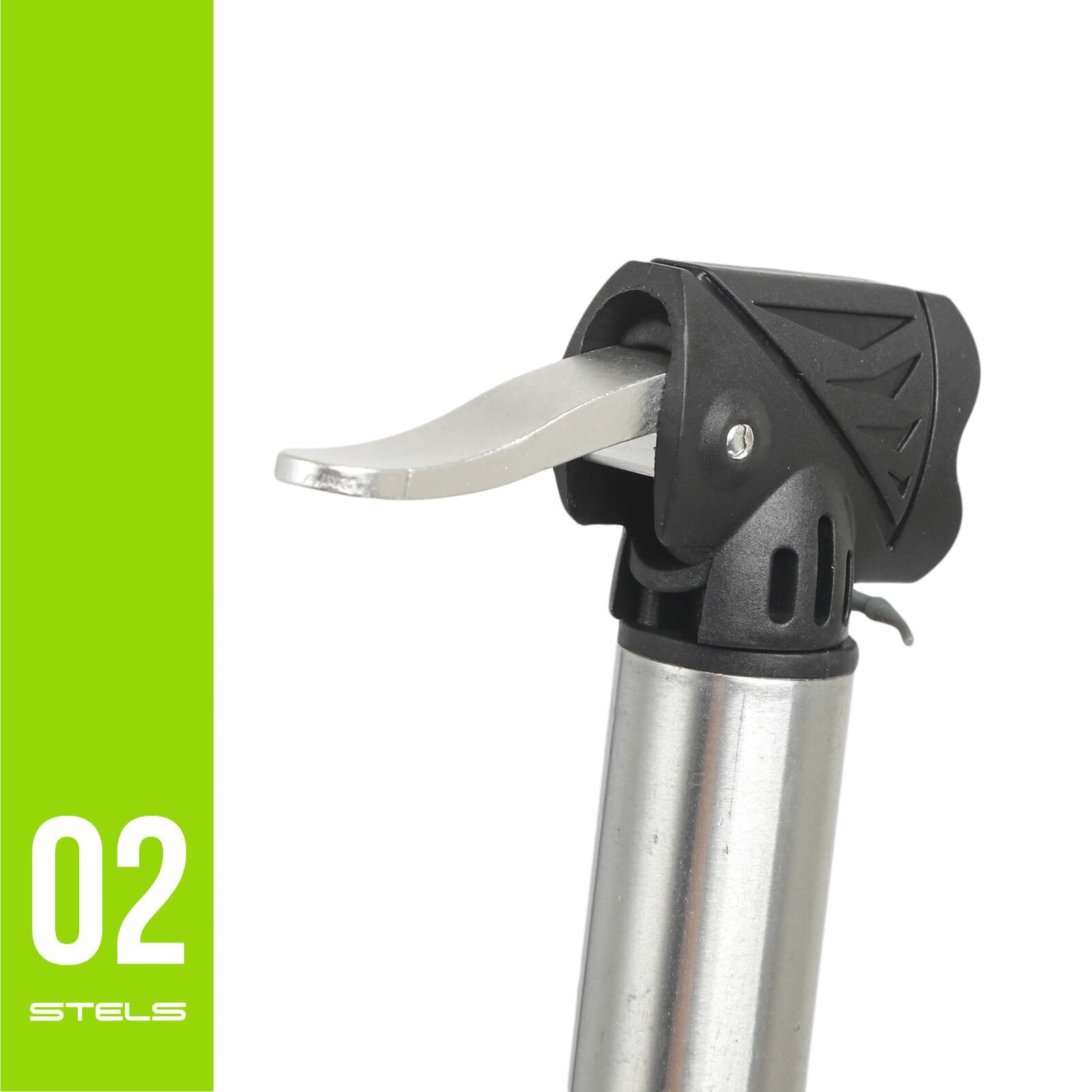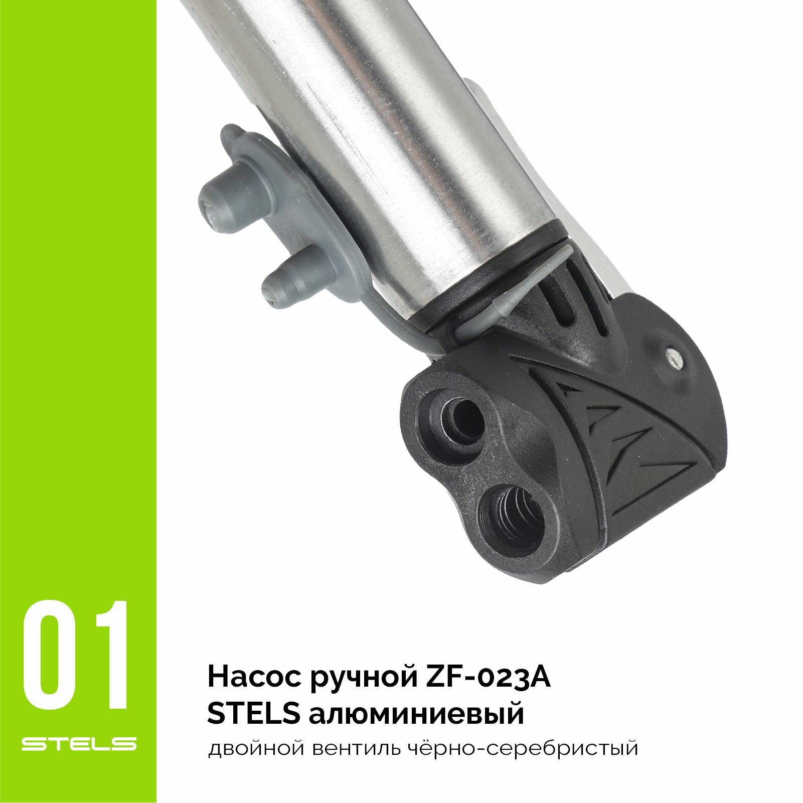 Насос для велосипеда ручной ZF-023A STELS, двойной вентиль, алюминиевый, серебро-черный