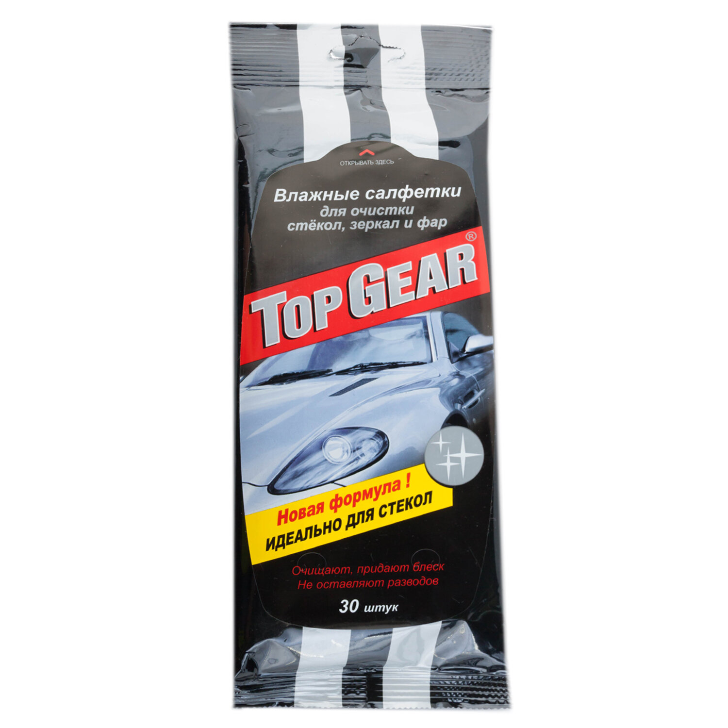 TOP GEAR 48038 Салфетки влажные "TOP GEAR" для стекол,зеркал и фар (30 шт)