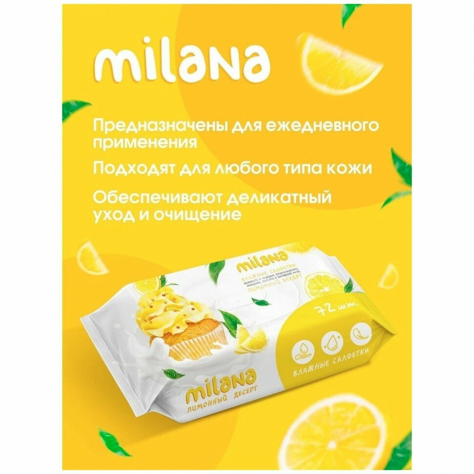 Влажные антибактериальные салфетки Milana Лимонный десерт (72шт)