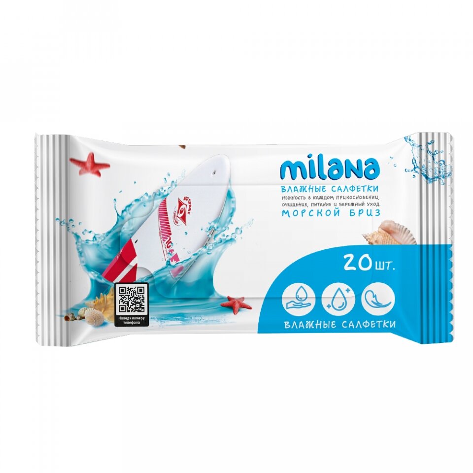 Влажные антибактериальные салфетки Milana Морской бриз (20 шт)