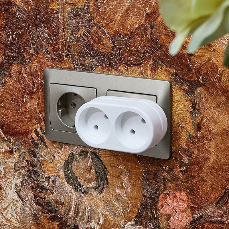 Розетка сетевая, электрический двойник разветвитель (6-10 А) без заземления, цвет: Белый
