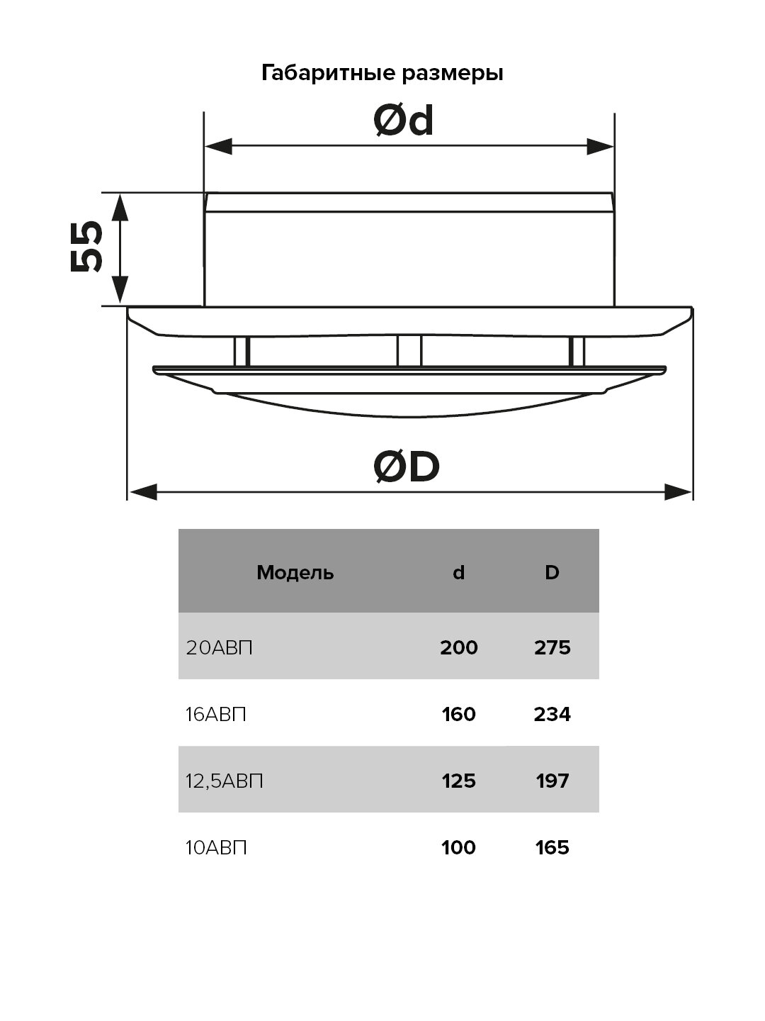 12,5АВП, Анемостат вытяжной регулируемый с фланцем АБС D125