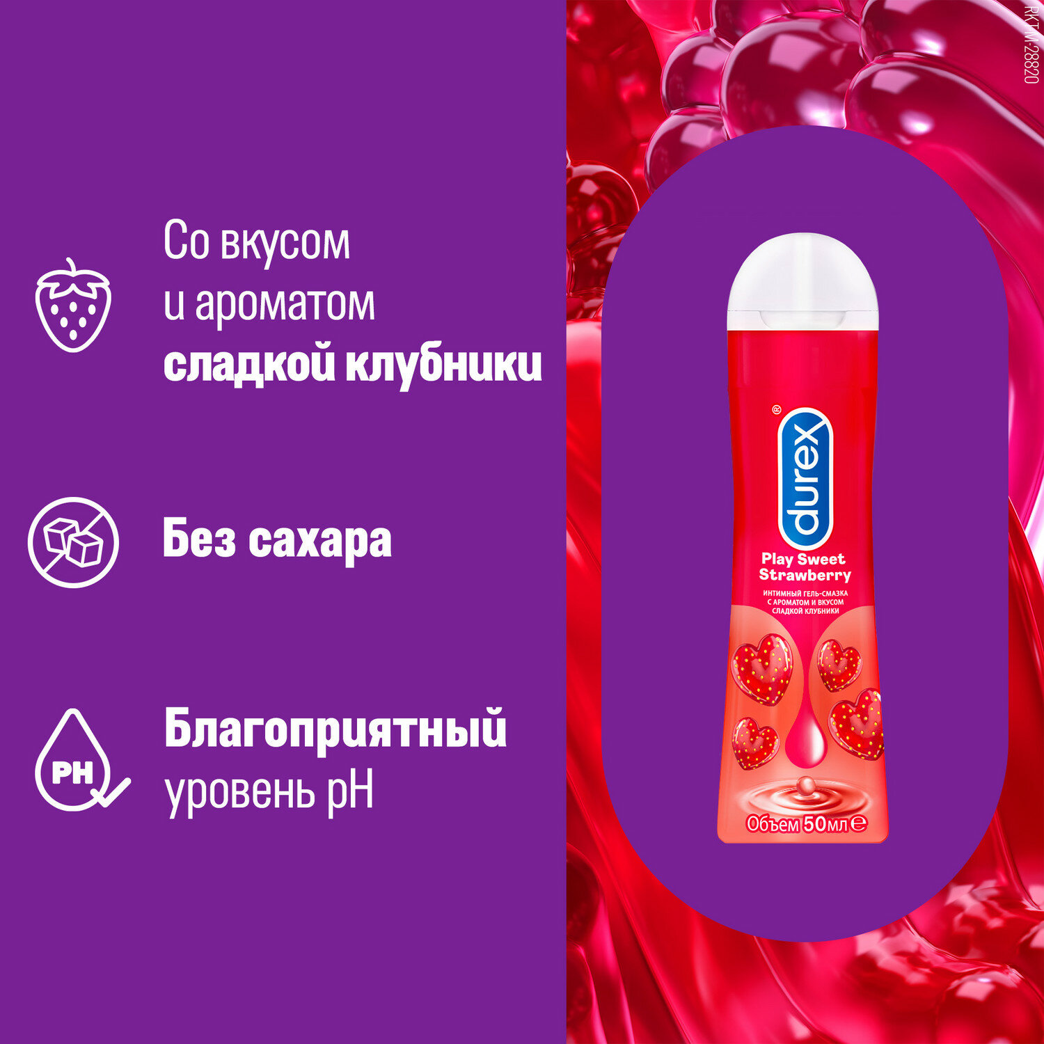 Купить Гель-смазка Durex Play Sweet Strawberry c ароматом и вкусом сладкой клубники, 50 мл