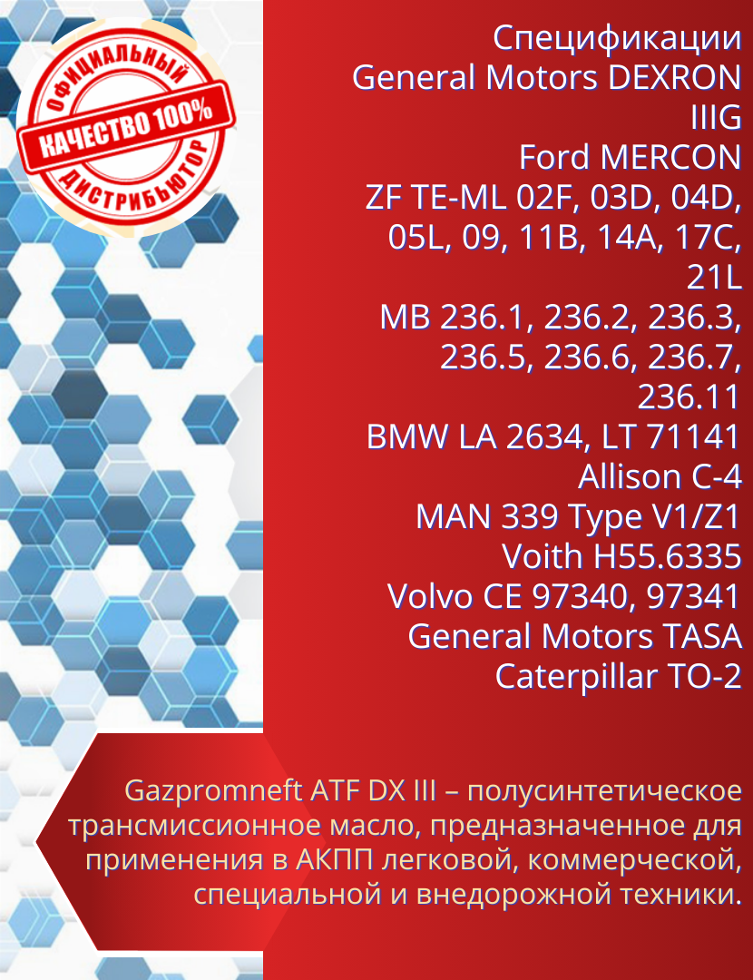 Масло Трансмиссионное Gazpromneft Atf Dx Lll 4 Л 253651855 Gazpromneft253651855