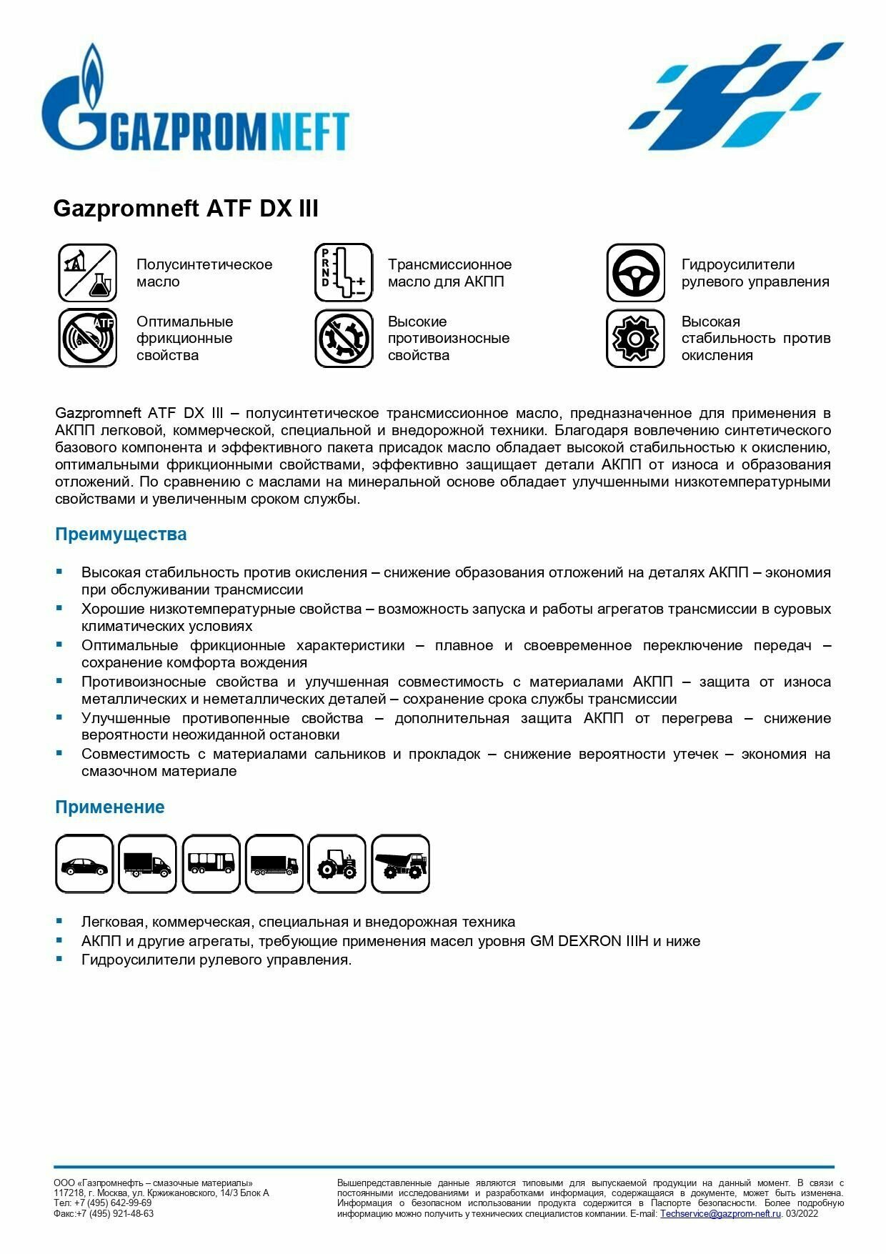 Масло Трансмиссионное Atf Dx Iii, 4л Gazpromneft арт. 253651855