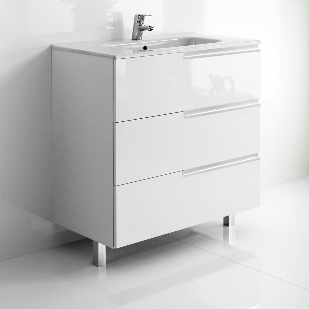 Модуль под раковину Roca Victoria Nord 78,5х46х74см, арт. ZRU9302835, ice edition, с тремя ящиками, ножки в комплекте