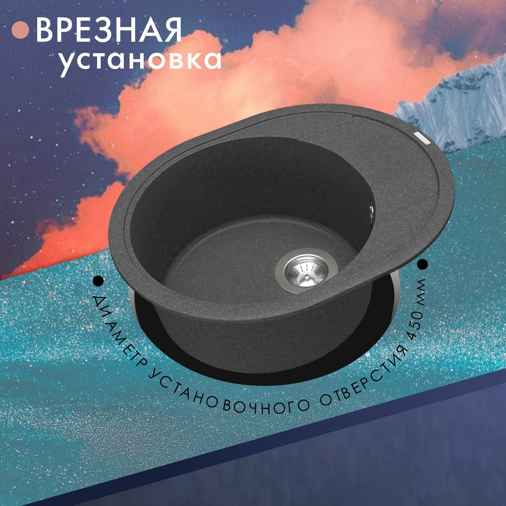 Мойка кухонная округлая Флорентина Родос 580 Чёрная (20.240.В0580.102)
